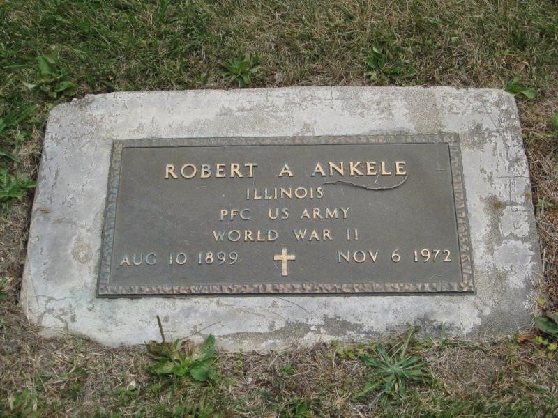PFC Robert Ankele died in Rockford on November 6, 1972; he is buried in Evergreen Cemetery with his parents.