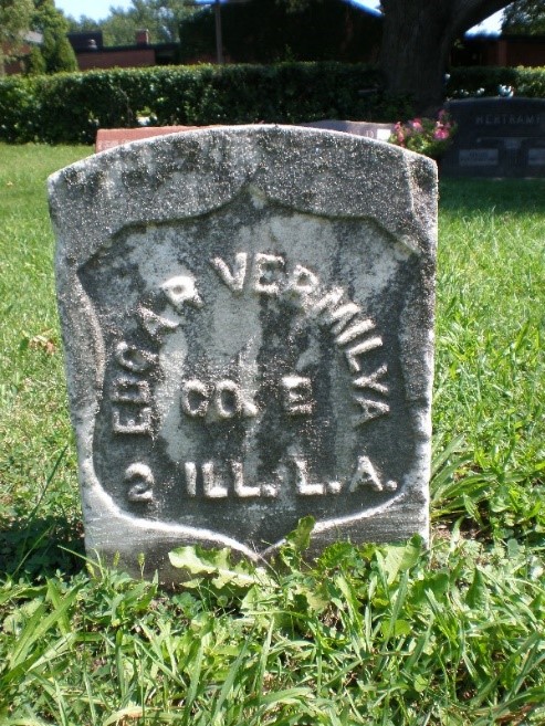 Private Edgar Vermilya died of disease on June 9, 1865, at Ft Donelson, Tennessee, six weeks before the Regiment was disbanded. He is buried next to his parents in Barrington’s Evergreen Cemetery.